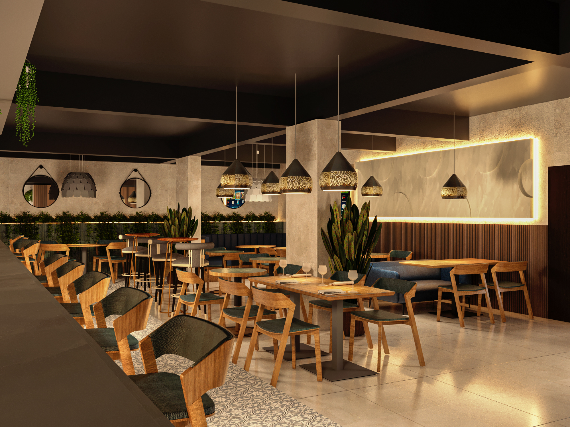 Drawing inspiration from the dynamic energy of nightlife, the concept centered around deep, moody hues, dramatic lighting, and bold textures. We aimed to strike a balance between modern industrial elements and a warm, welcoming ambiance, ensuring the space felt both edgy and comfortable.